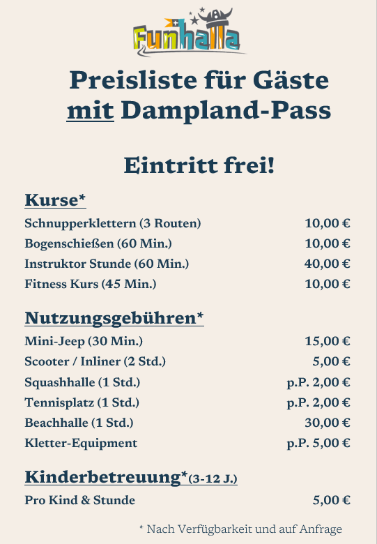 Öffnungszeiten Funhalla: täglich von 10.00 – 18.00 Uhr